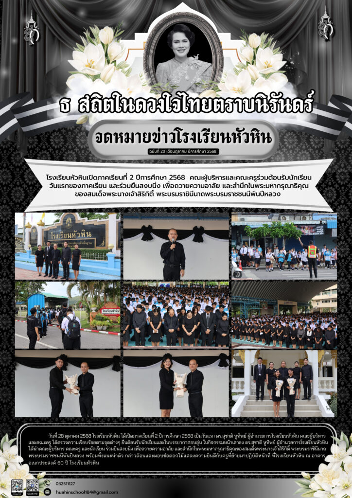 โรงเรียนหัวหินได้รับการคัดเลือกเป็นผลงานการขับเคลื่อนตรงตามข้อคิดเห็นคณะกรรมการสภานักเรียน ระดับประเทศ ประจำปี 2567 กิจกรรม “TSC The Best History” สืบสาน สร้างสรรค์ แบ่งปันอดีต